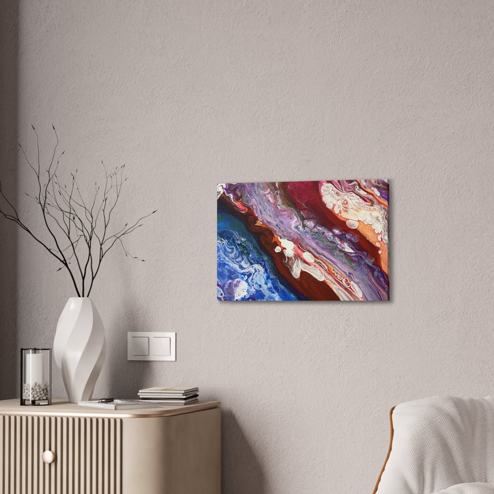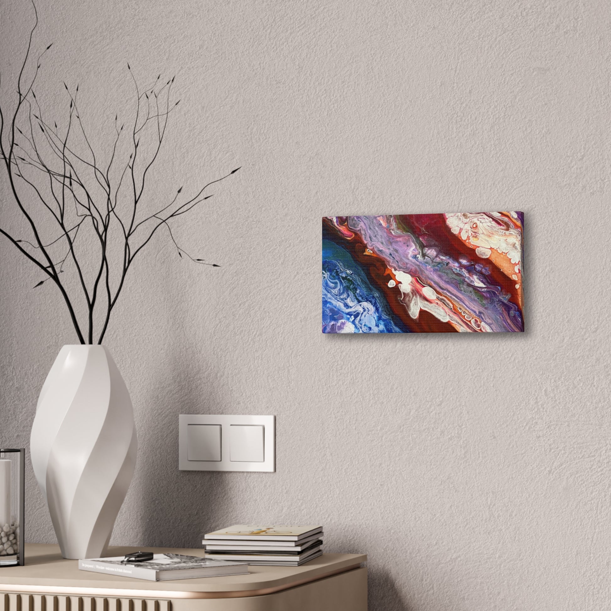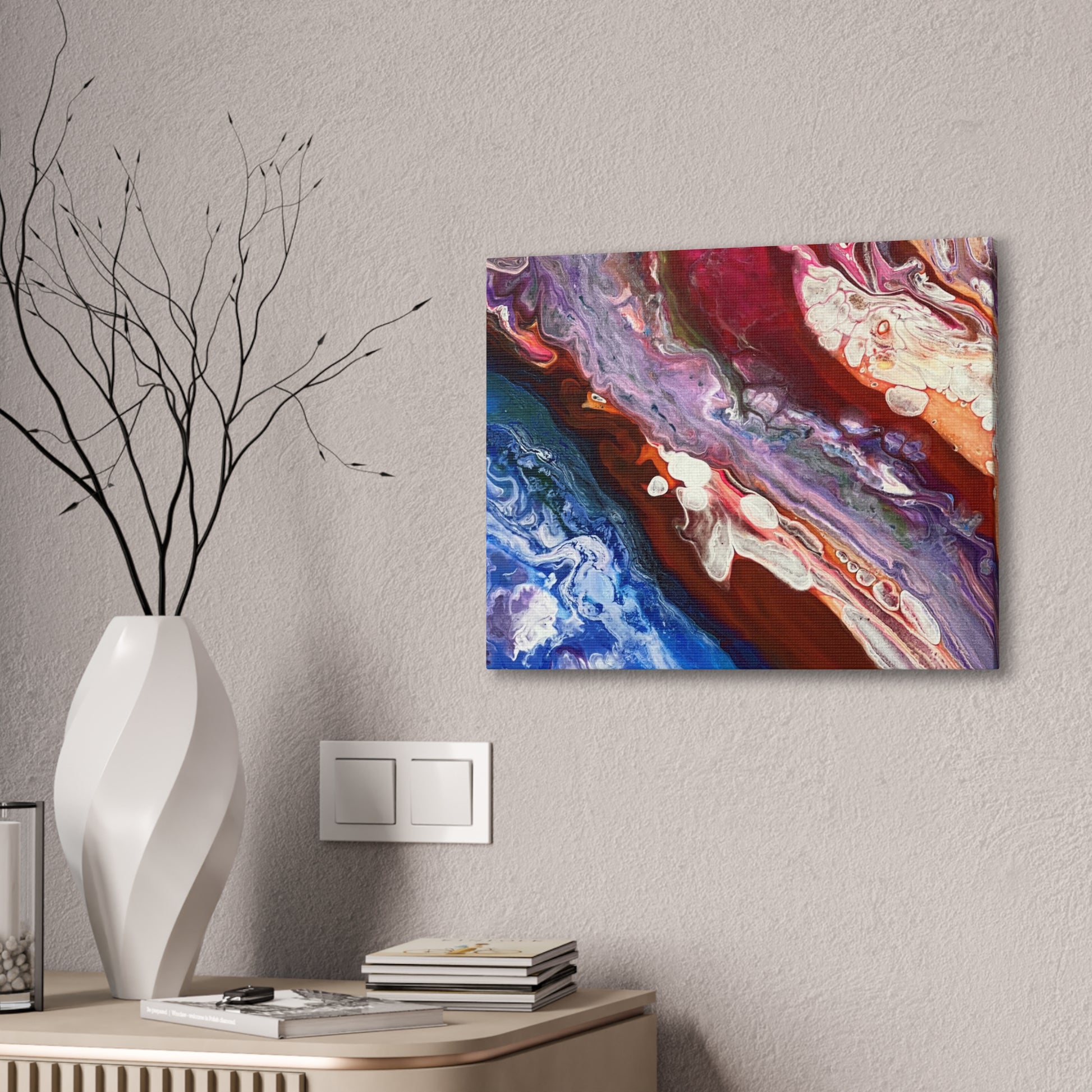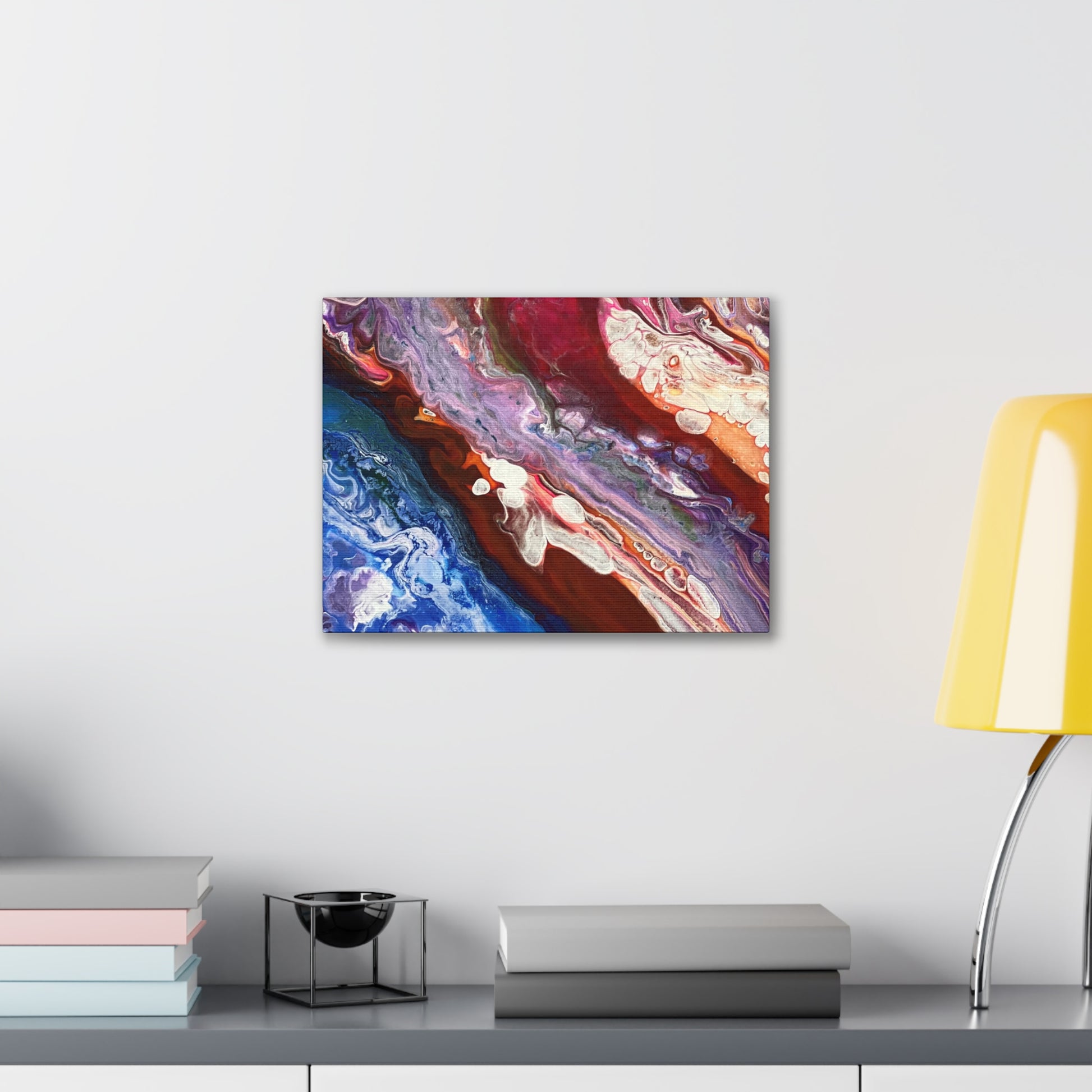 Dive into the swirling depths of "Crimson Tides" abstract canvas art. This vibrant piece features a captivating blend of rich reds, purples, and blues flowing together in a fluid, dynamic motion. The streaks of color evoke the image of flowing water, blood, or molten energy, creating a mesmerizing and powerful visual experience. Ideal for modern and eclectic interiors, "Crimson Tides" makes a striking statement, infusing any room with bold color and movement.