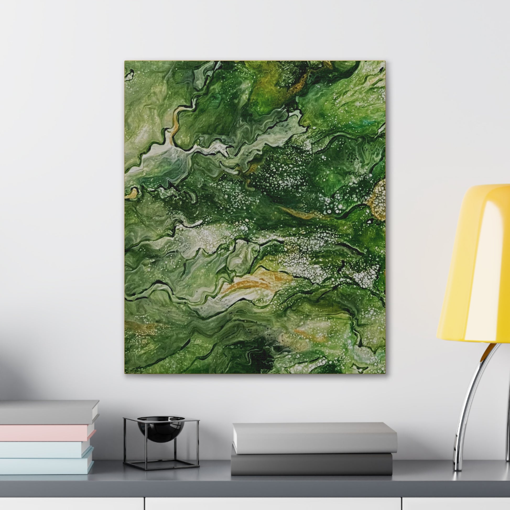 Bring the tranquility of nature into your home with the Emerald Oasis Canvas Print. Featuring a lush, green abstract marble design, this artwork is expertly stretched over a durable .75" pine wood frame, ensuring long-lasting quality and a sleek, modern finish. Available in various sizes, this canvas print is perfect for adding a calming, natural vibe to any room, whether it's your living area, bedroom, or office.