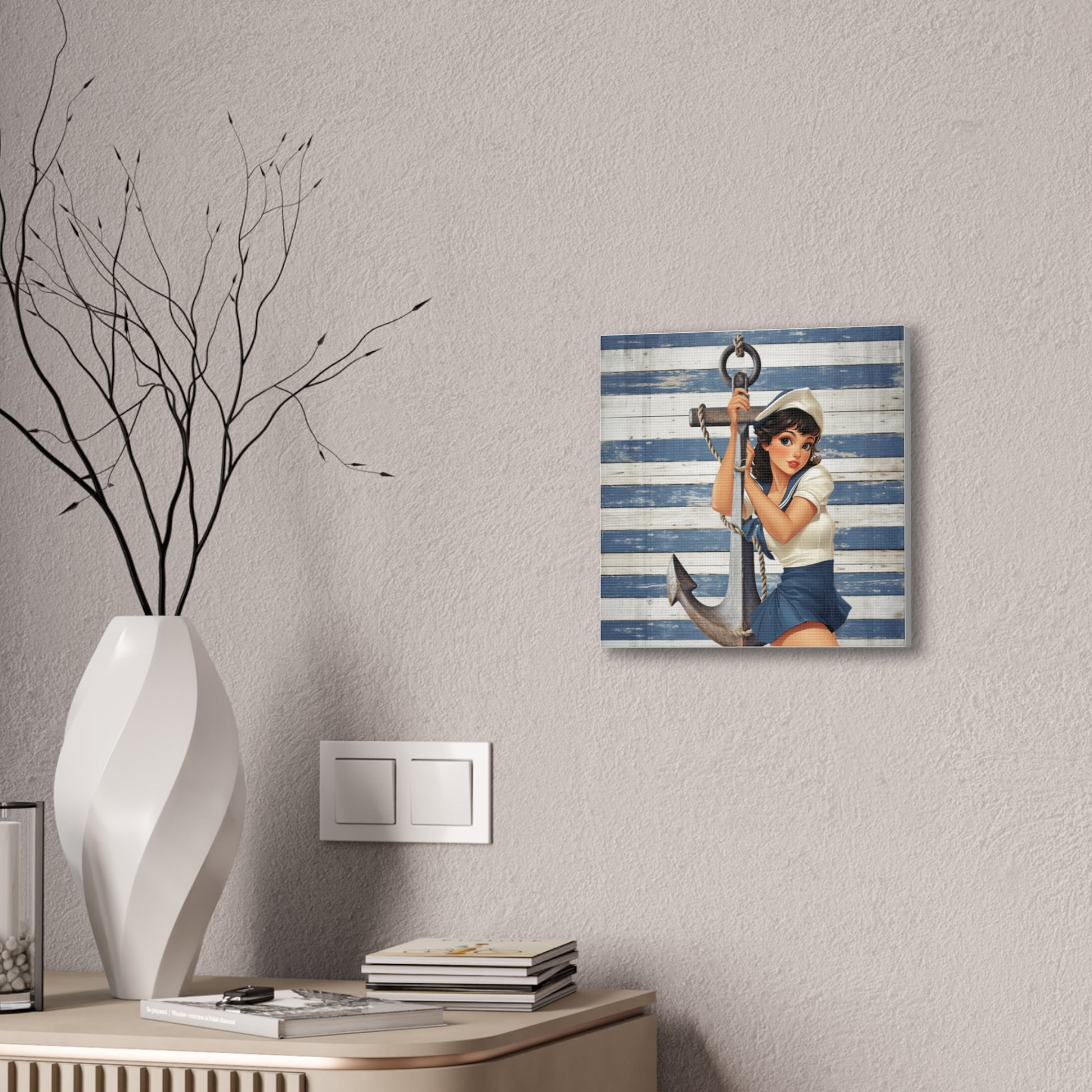 Available in multiple sizes to suit your space, "Nautical Pin-Up" is the perfect accent for a home bar, office, or any room where you want to evoke a playful and retro seaside vibe. Ideal for fans of vintage fashion, nautical themes, and classic Americana, this canvas is sure to bring a splash of personality to your walls.