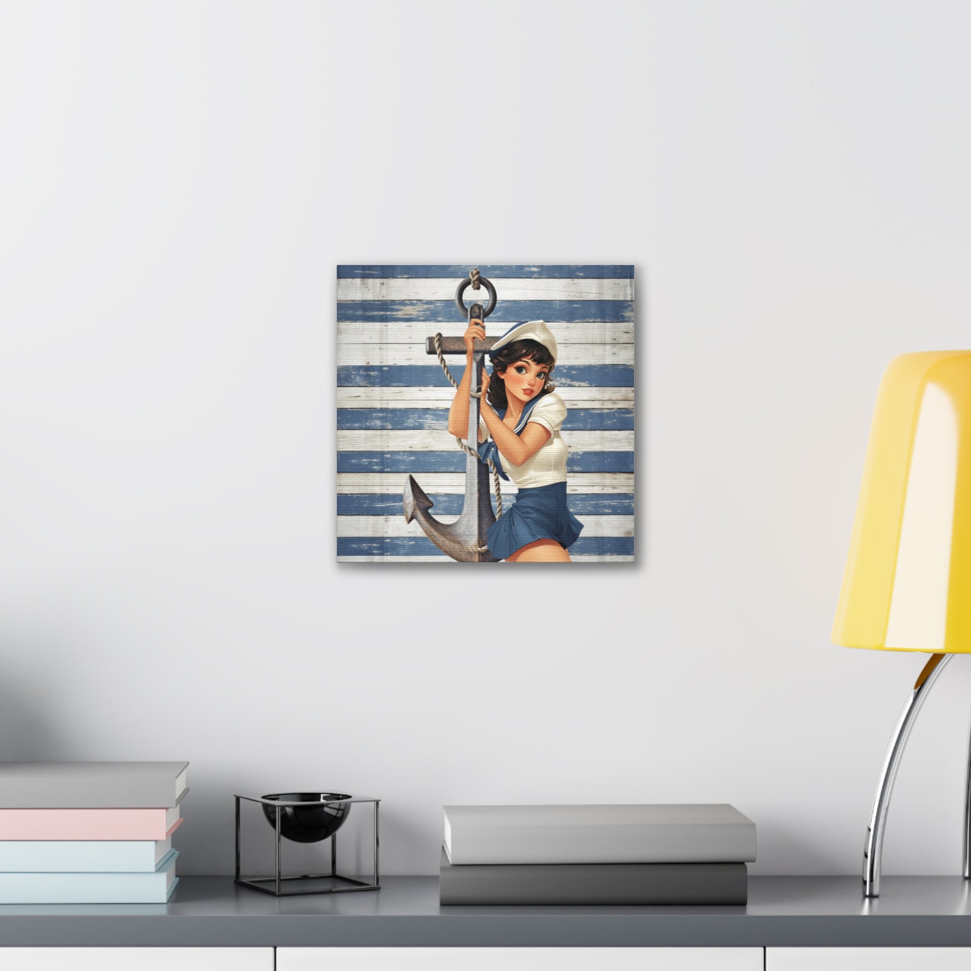 Nautical Pin-Up: Vintage Sailor Charm Stretched Canvas Print