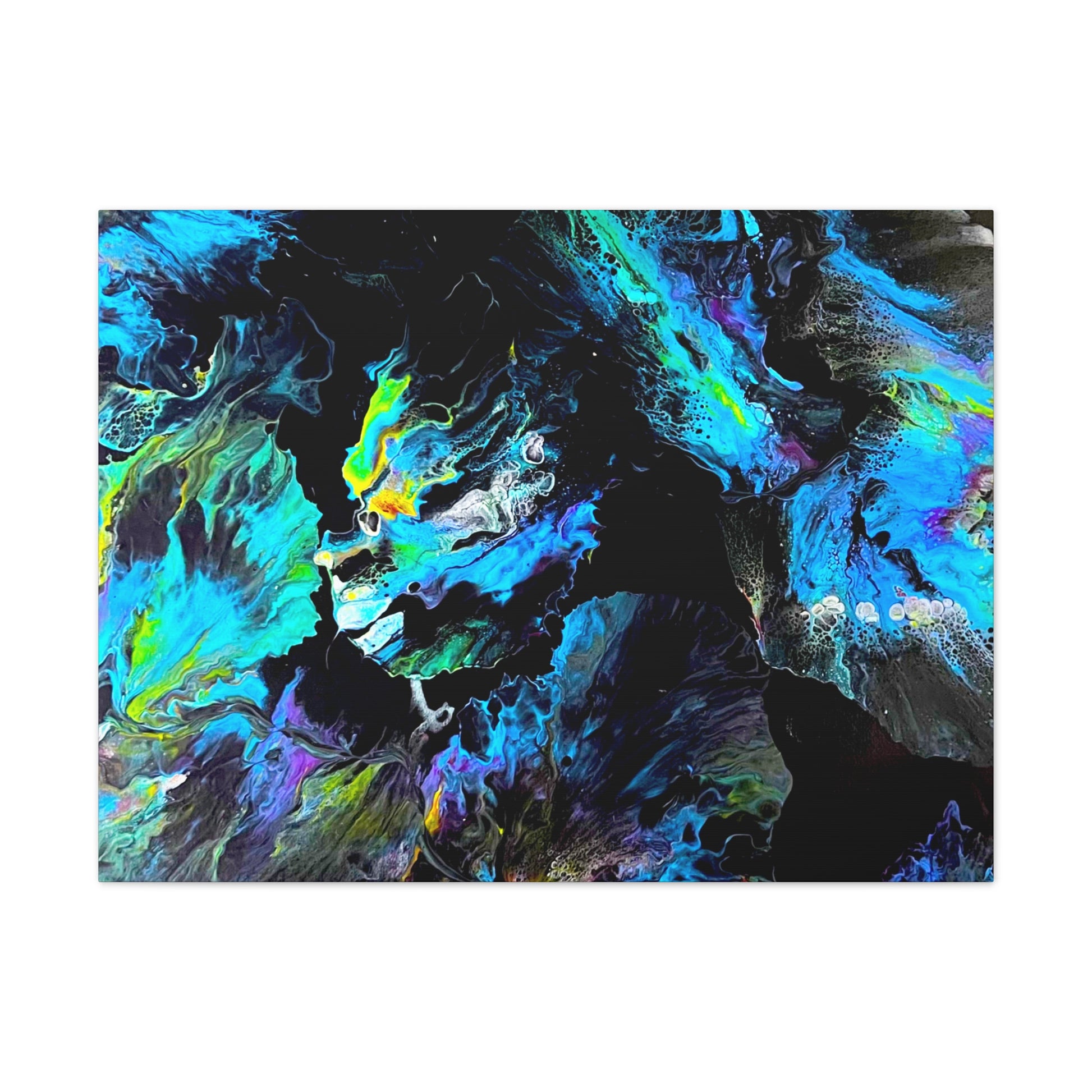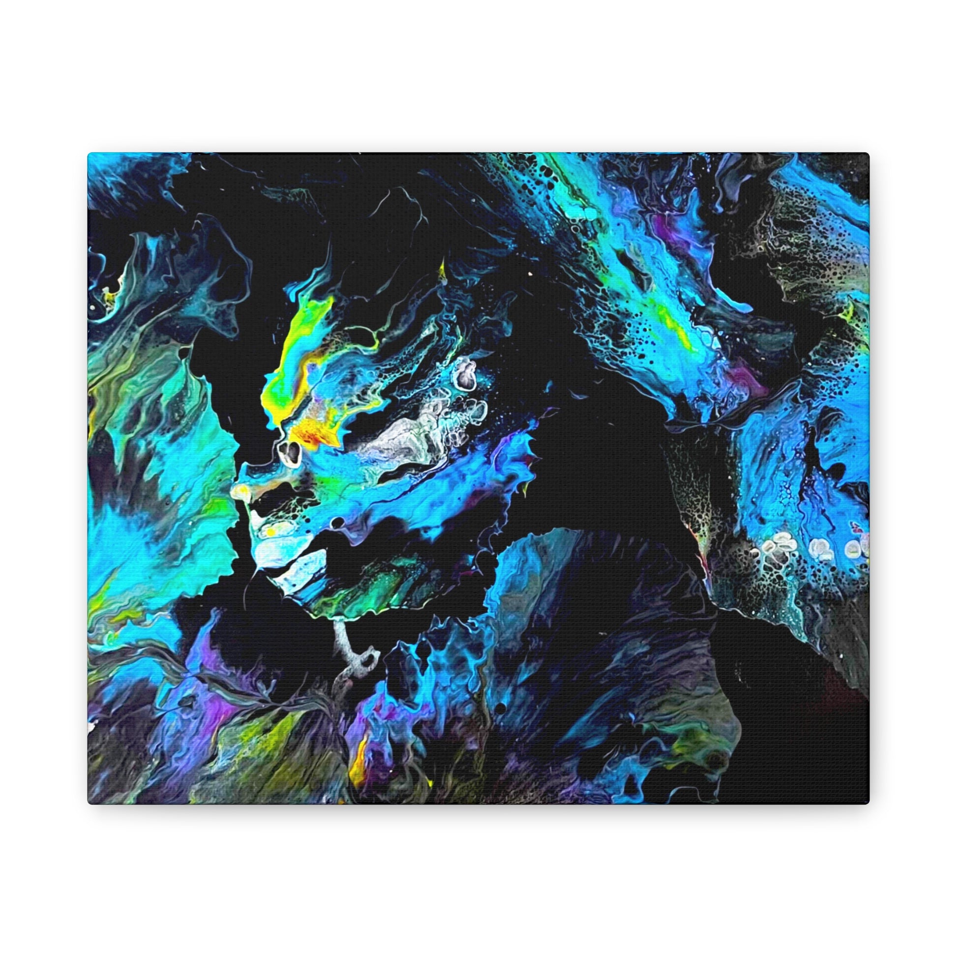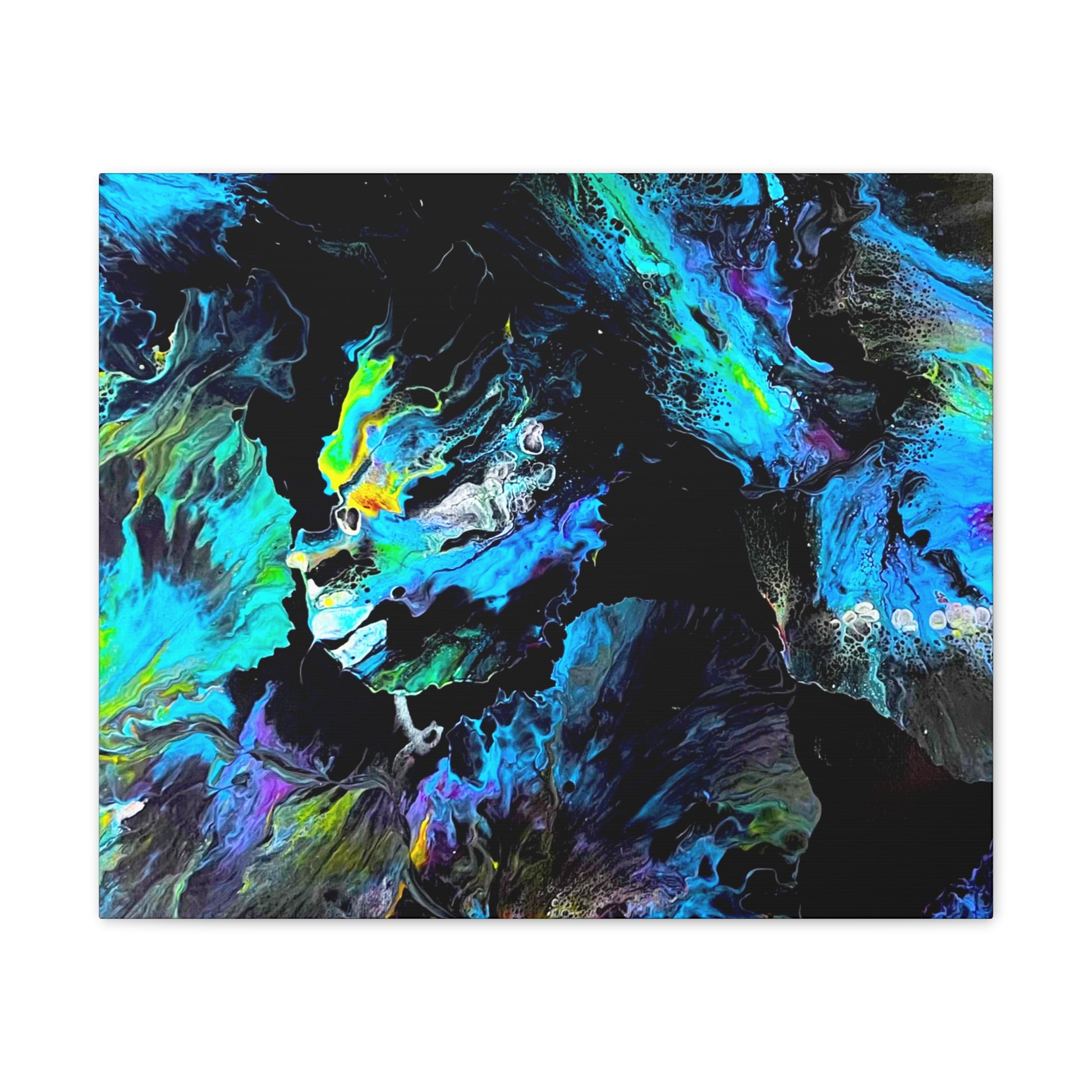 Dive into the tranquil beauty of "Sea of Serenity," an abstract canvas that evokes the peaceful flow of natural elements in motion. With swirling blues, soft greens, and hints of yellow against a dark backdrop, this piece captures the fluid grace of underwater currents or wind-swept patterns, bringing a sense of calm and quiet energy to your space.