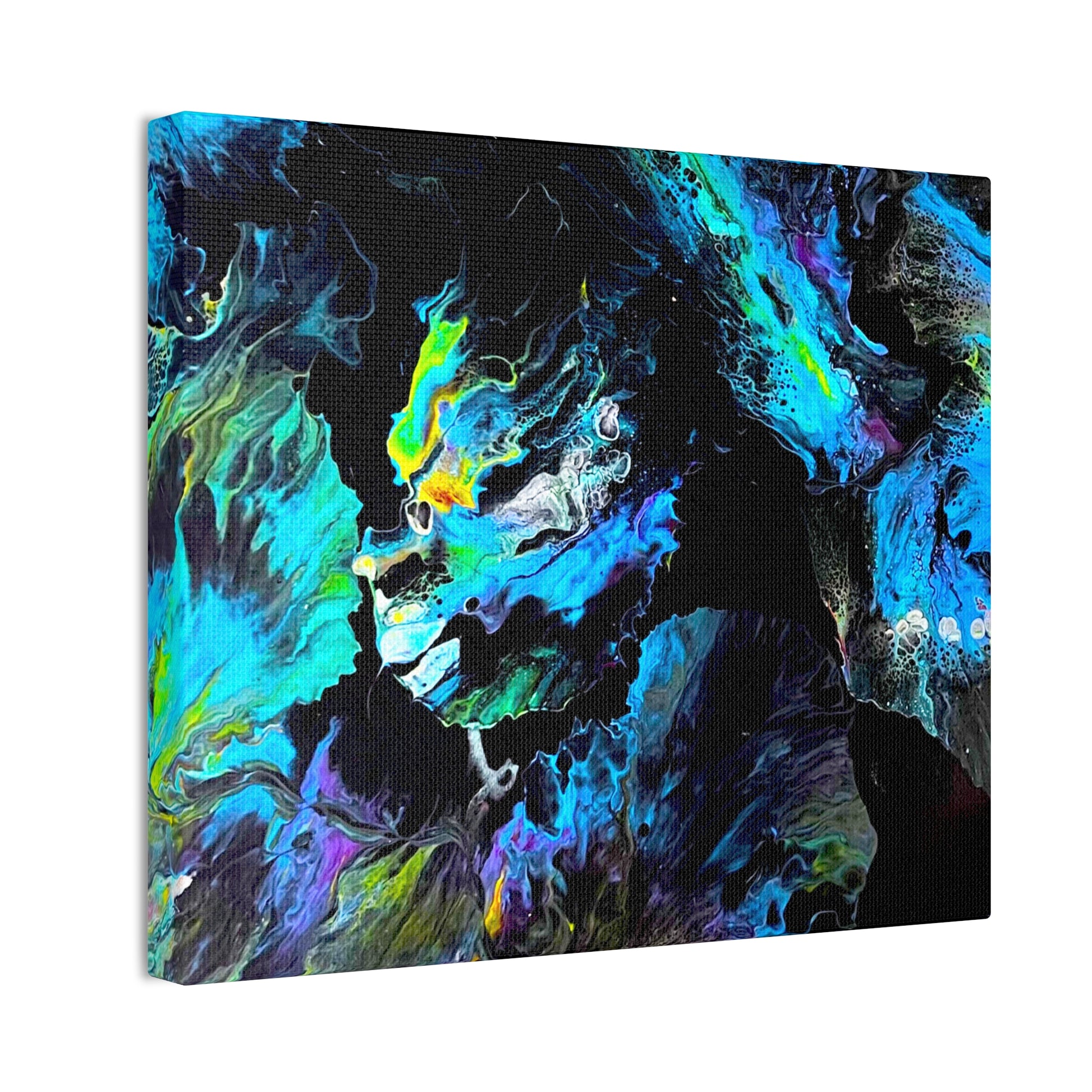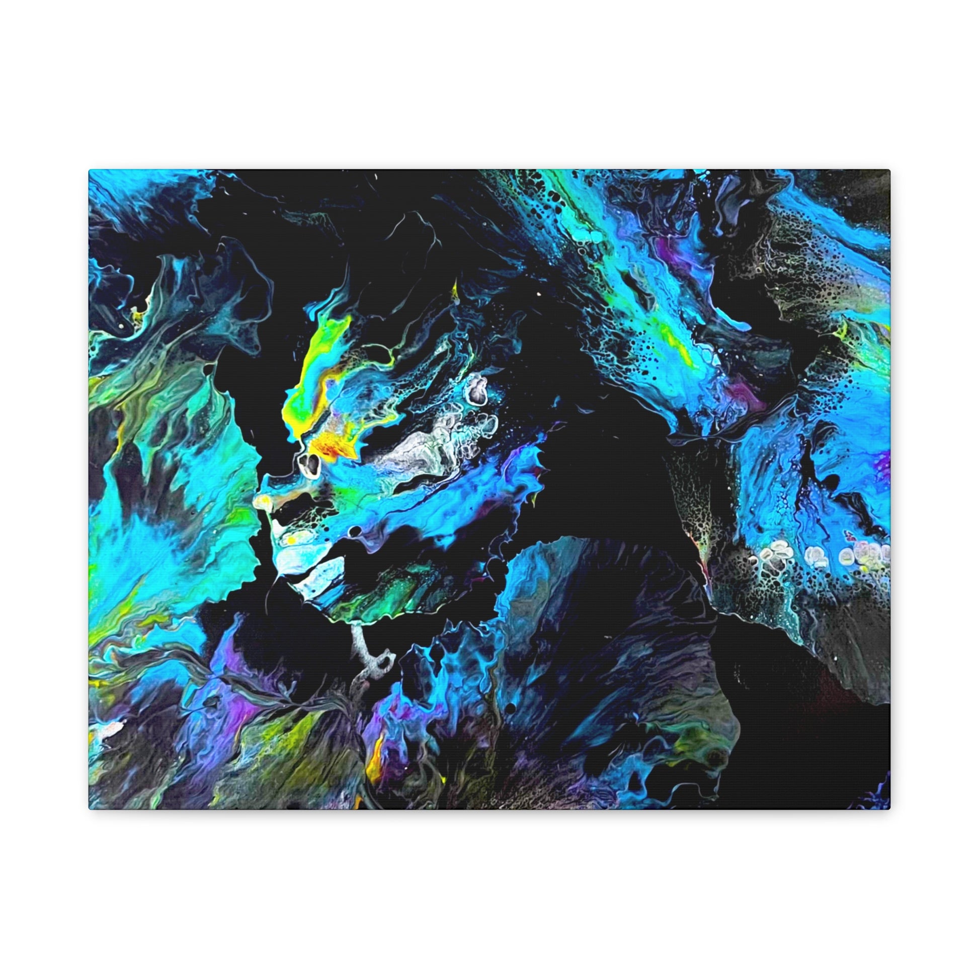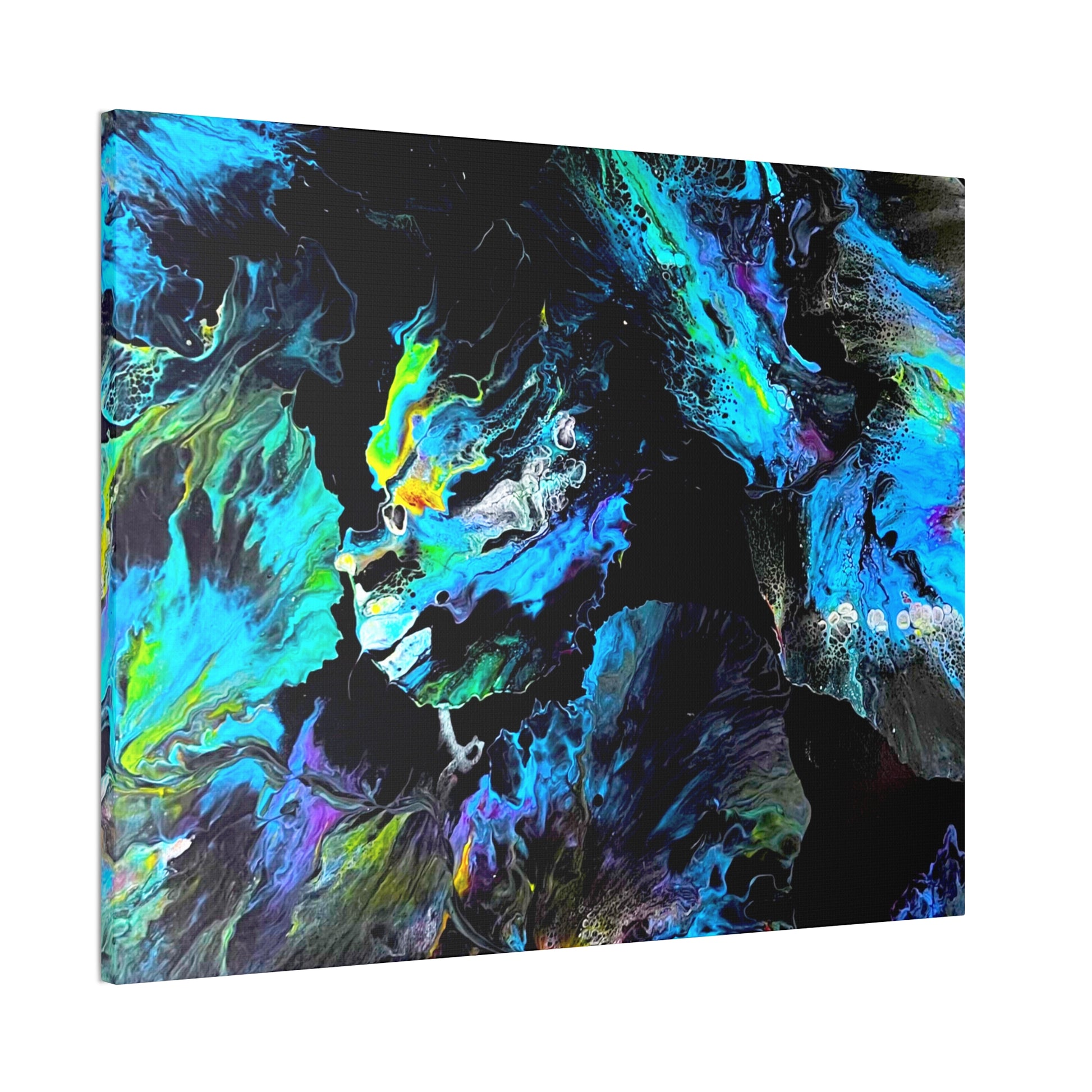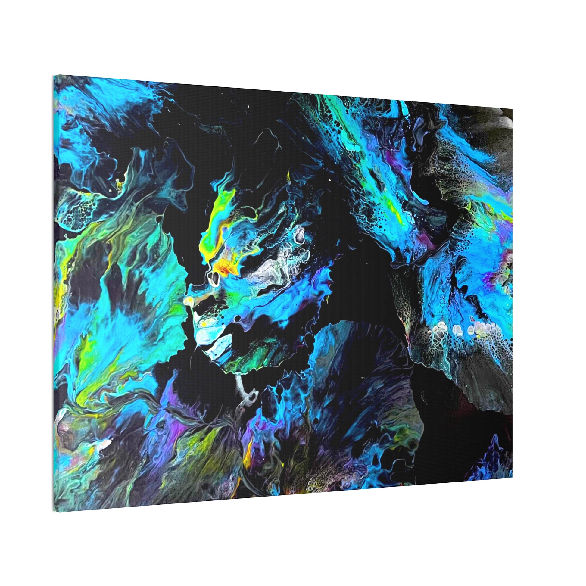 Dive into the tranquil beauty of "Sea of Serenity," an abstract canvas that evokes the peaceful flow of natural elements in motion. With swirling blues, soft greens, and hints of yellow against a dark backdrop, this piece captures the fluid grace of underwater currents or wind-swept patterns, bringing a sense of calm and quiet energy to your space.