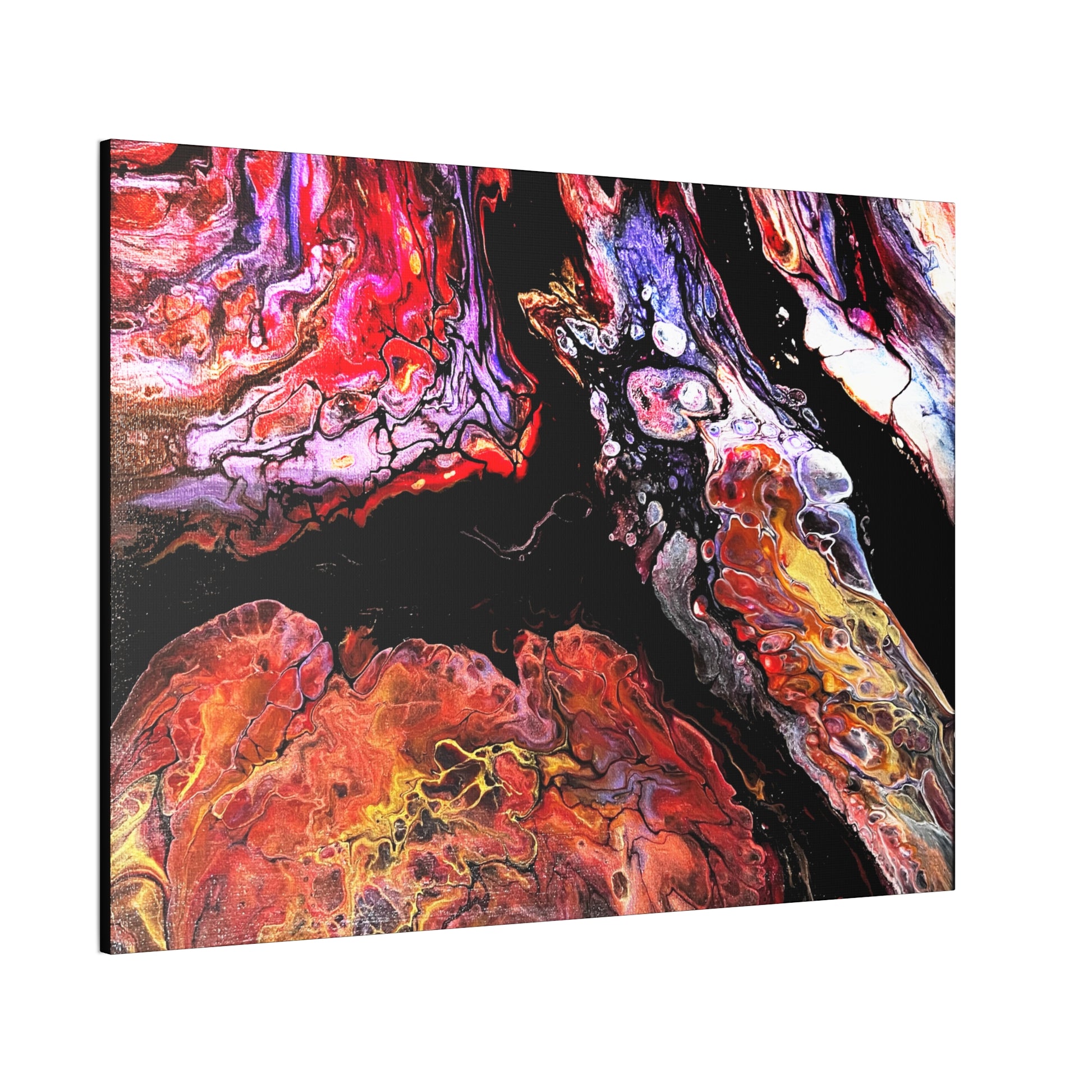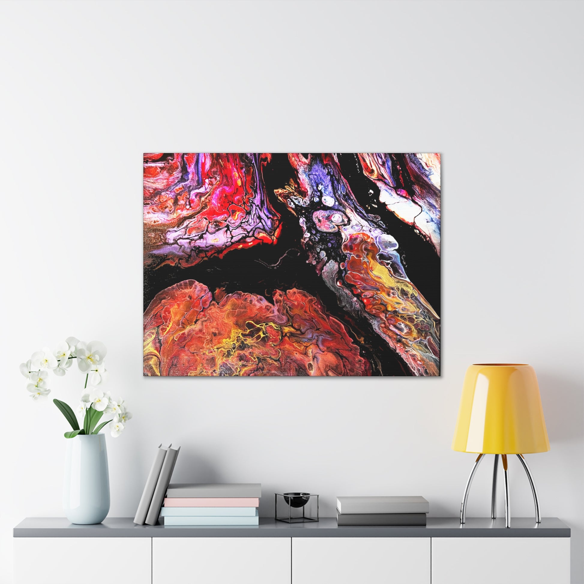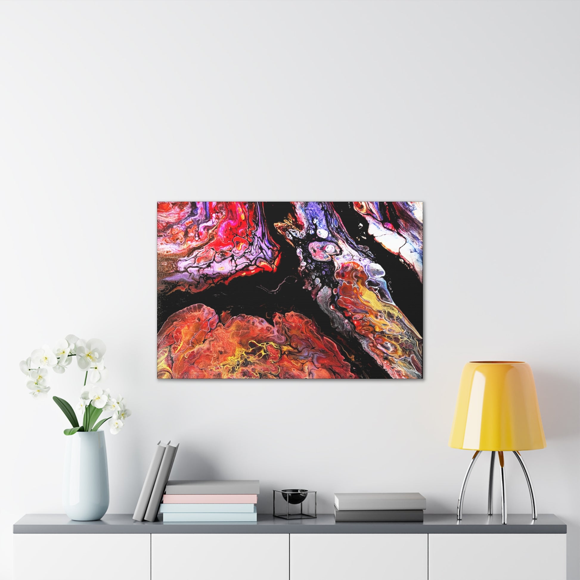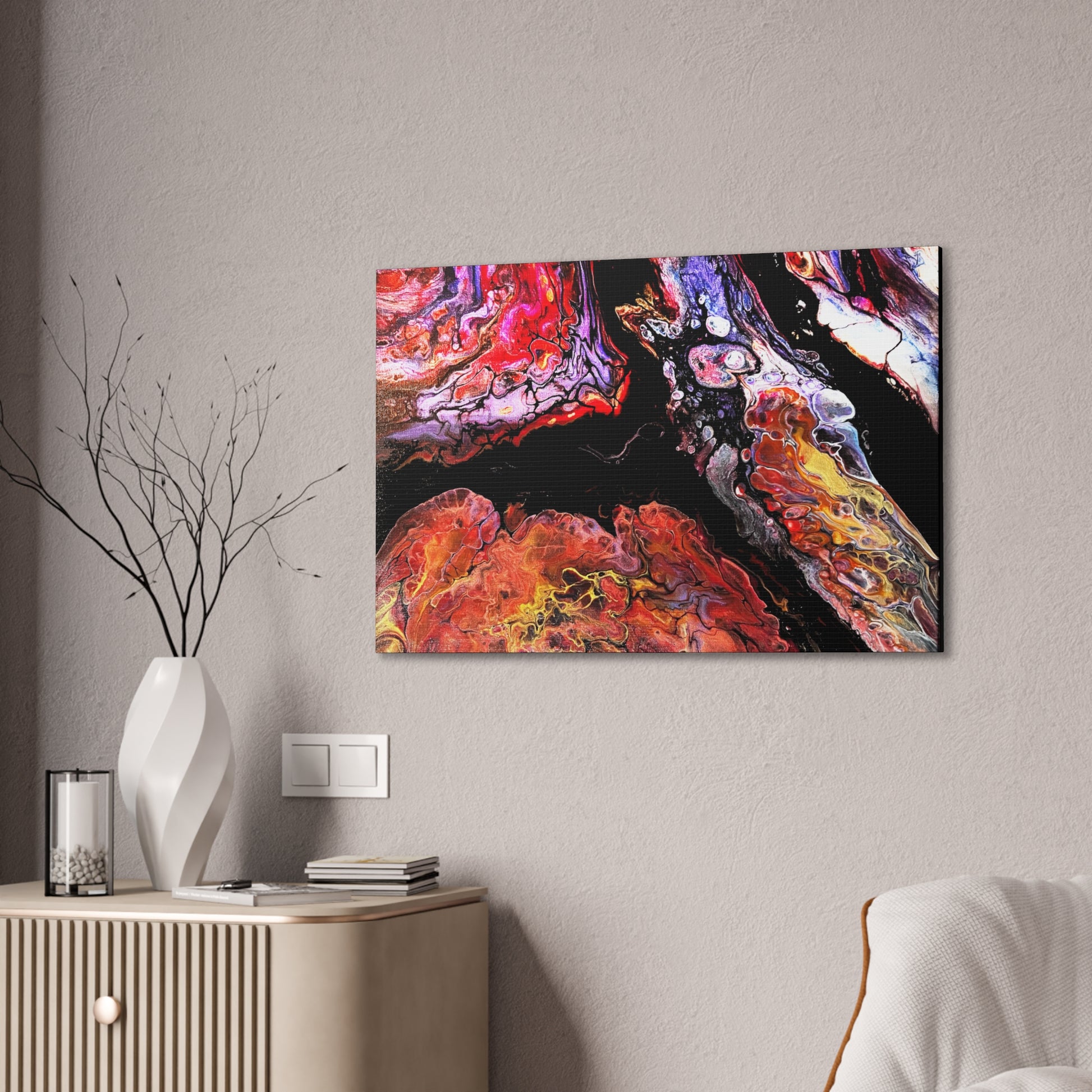 Experience the electrifying beauty of the "Vibrant X-Ray" abstract canvas art. This piece showcases a stunning visual array of luminous colors that mimic the intensity of an X-ray scan, with rich, glowing reds, fiery oranges, and deep purples. The unique blend creates an almost otherworldly feel, resembling thermal imaging or a vivid interpretation of geological formations. This artwork is perfect for those looking to introduce a powerful and intriguing element into their space.